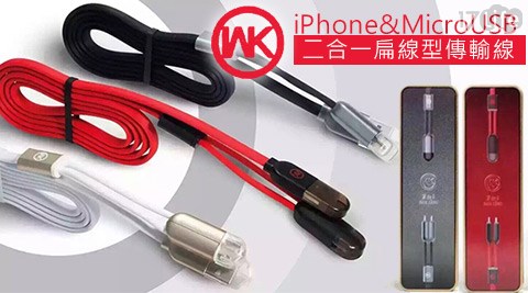 剛好17 life的 WK-iPhone&MicroUSB二合一扁線型傳輸線"